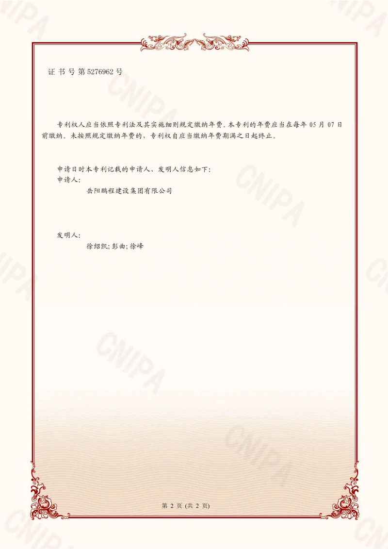 下一篇:一種墻體抹灰施工設(shè)備-發(fā)明專利證書(shū)(易清華、黃晶、袁成、..
